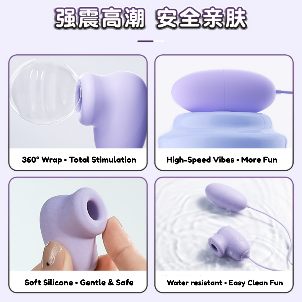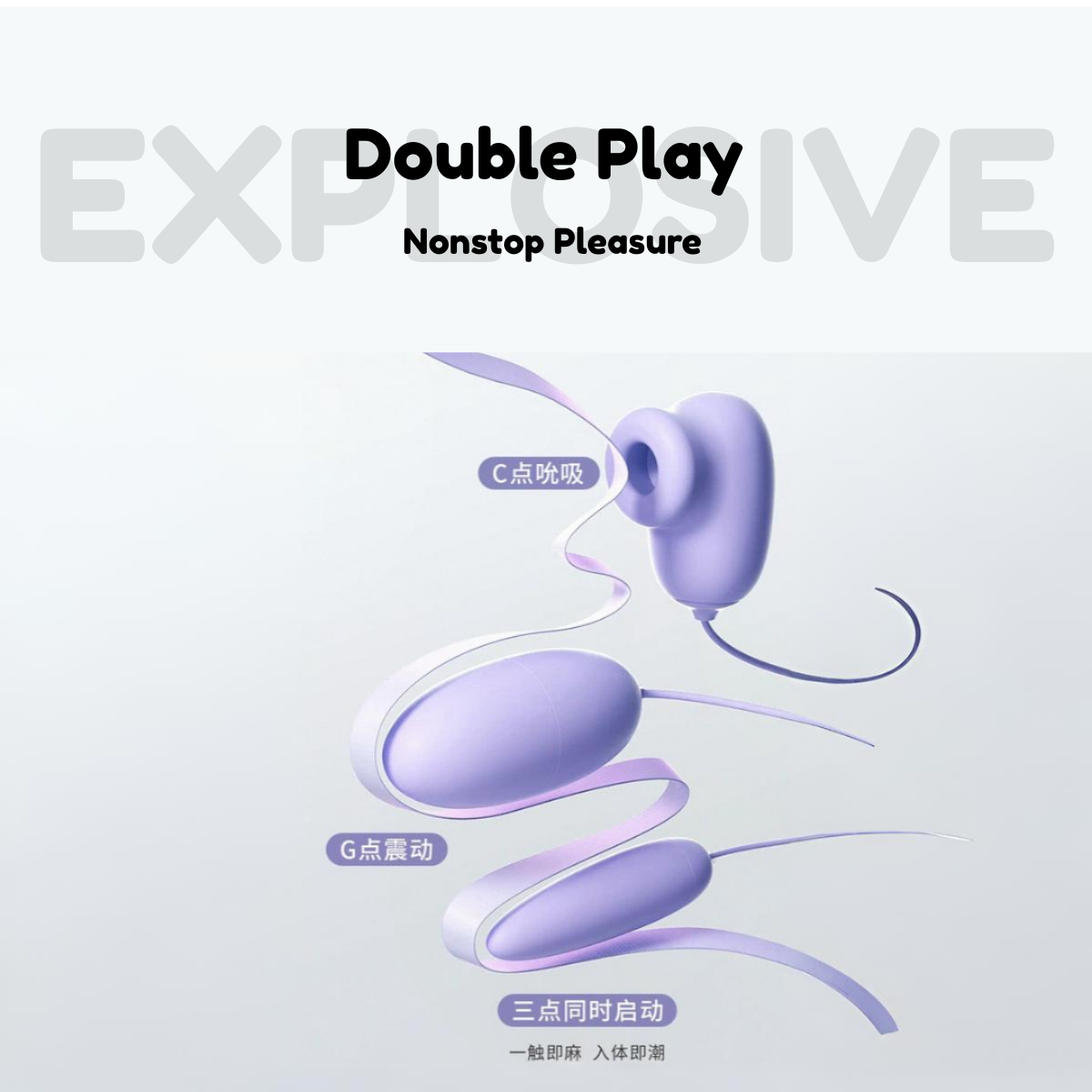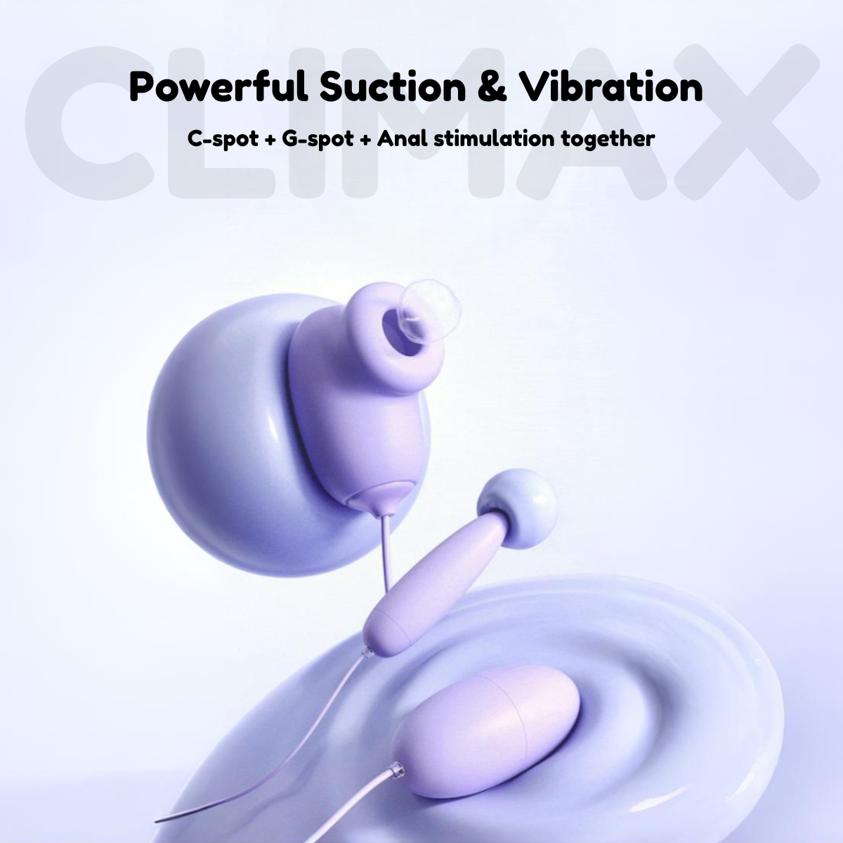 3-in-1 Pleasure – suction head, round egg, and tapered egg for different feelings.
